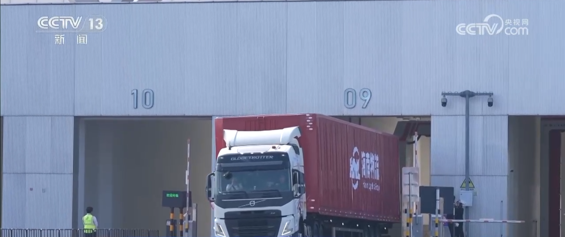 在??谛潞8酆湍细邸岸€口岸”貨運(yùn)集中查驗(yàn)場,在記者身后,第一批裝載著享受加工增值免關(guān)稅政策貨物的車輛正在順序通過海關(guān)監(jiān)管通道,準(zhǔn)備進(jìn)入內(nèi)地。