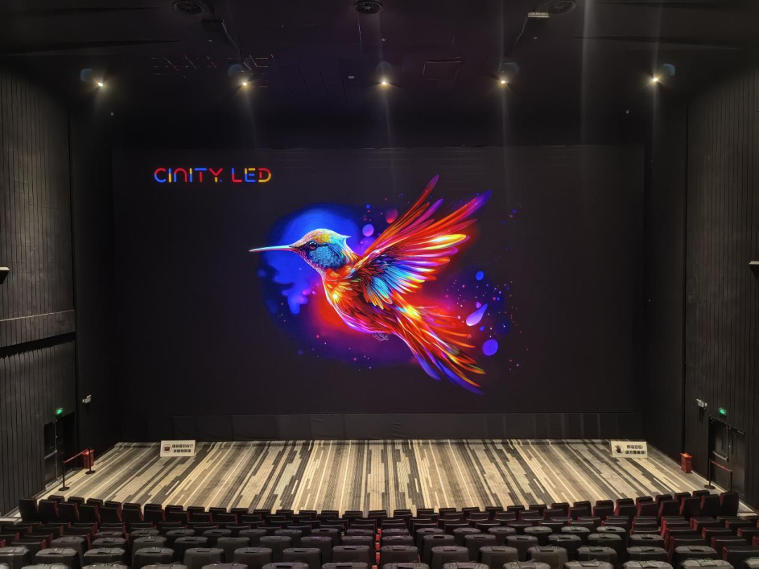其中,昆山中影國際影城(花園城CINITY LED店) LED影廳的屏幕系江蘇首塊CINITY LED透聲屏——在該影廳,觀眾可以看到更流暢的動作畫面、更細膩的色彩層次和更接近真實的光影細節。