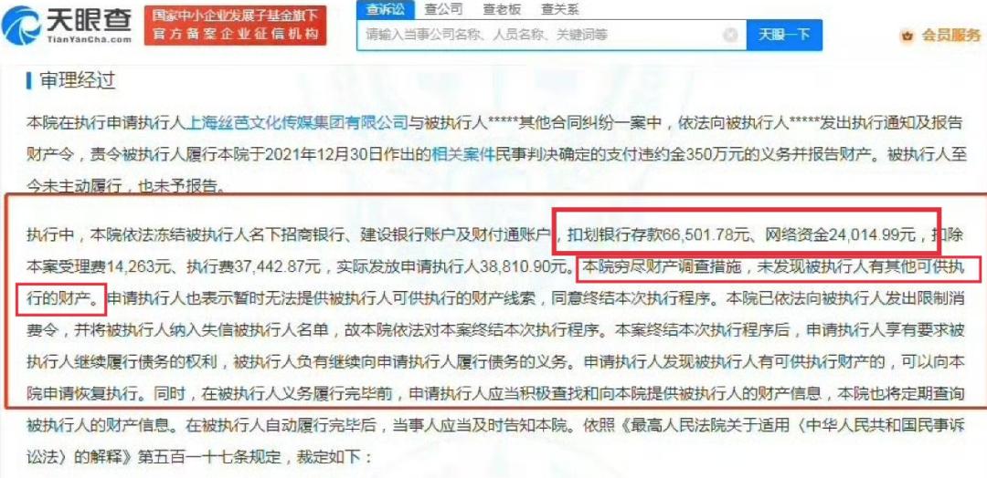 當(dāng)初解約被要違約金350w,在被強制執(zhí)行時,卡里只有9w