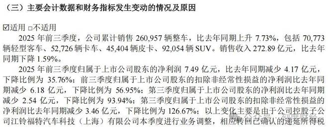 江鈴汽車2025年第三季度報告揭示了公司在業(yè)務發(fā)展與經(jīng)營運營中面臨的多重挑戰(zhàn),銷量增長與營收、利潤的背離成為核心矛盾。