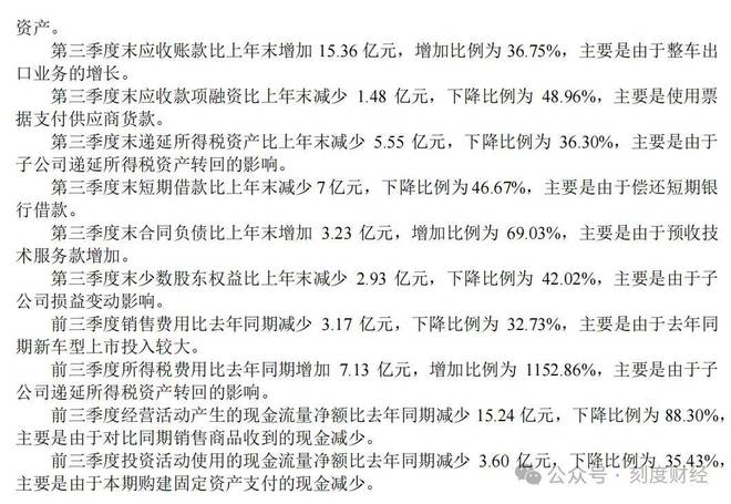 前三季度,江鈴汽車經(jīng)營活動產(chǎn)生的現(xiàn)金流量凈額僅2.02億元,同比大幅下降88.30%,對日常運營的支撐力度明顯減弱。