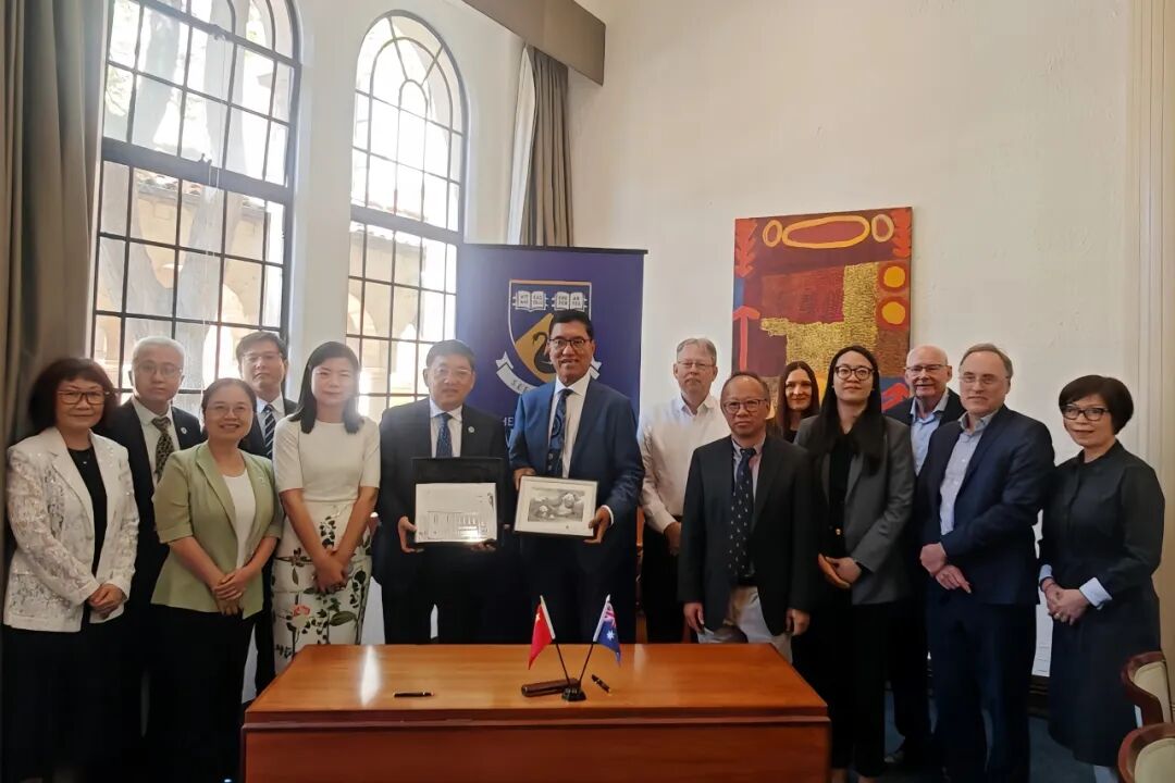 在澳大利亞,代表團訪問西澳大學。唐洪武與該校校長Amit Chakma簽署了聯合培養及管理人員交流等合作協議,并共同見證兩校醫學院簽署“再生醫學聯合研究中心”協議。雙方就進一步升級合作層次達成共識,將探索在廣州國際校區共建“微校園”,開展課程互授、師資互聘、學生雙向流動和聯合科研等項目,并探討了互設聯絡辦公室、互派管理人員交流等機制化合作的可能性,旨在將兩校合作打造成系統化、標桿性的國際合作典范。