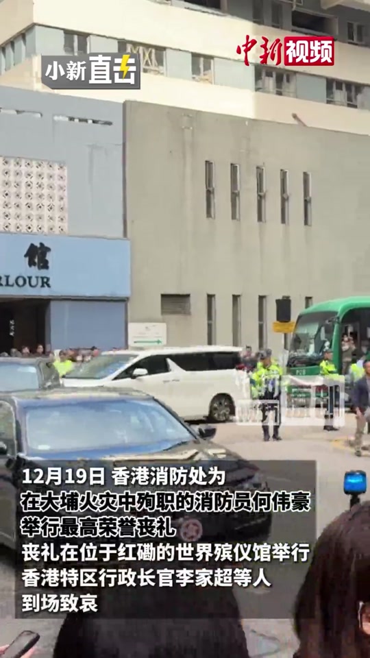 香港為殉職消防員何偉豪舉行最高榮譽(yù)喪禮,儀式結(jié)束后靈車(chē)從殯儀館途經(jīng)宏福苑前往墓園。