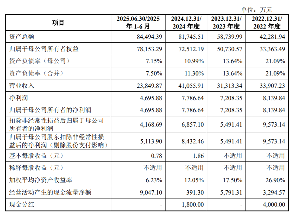 業績方面,2022年至2024年及2025年上半年,優迅股份實現的營業收入分別為3.39億元、3.13億元、4.11億元及2.38億元;凈利潤分別為8139.84萬元、7208.35萬元、7786.64萬元及4695.88萬元。
