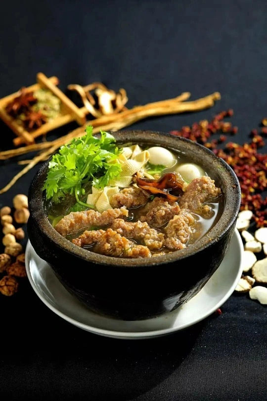 武陟砂鍋的歷史可以追溯到明清時期,甚至傳說三國時期的曹操都曾贊不絕口。它最大的特點在于“砂鍋慢煨”和“現潑熱油”。與其他地方的砂鍋不同,武陟砂鍋講究“白煮”和“原汁原湯”。廚師會提前將肉類食材(如排骨、牛肉)放入特制的陶制砂鍋中,用微火慢煨幾個小時。這種陶土砂鍋透氣性好、散熱慢,能讓肉質酥爛而不柴,湯汁濃郁而不膩。