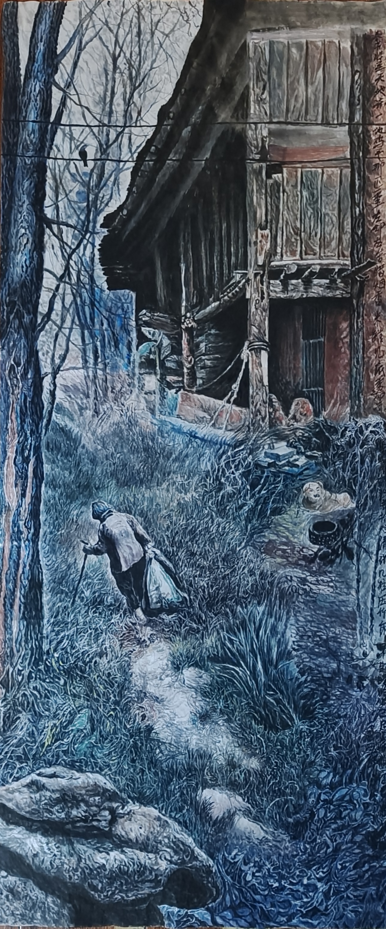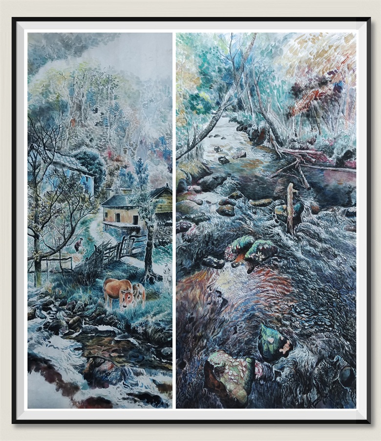 商武斌的畫絕不重復(fù)傳統(tǒng)經(jīng)典的藝術(shù)樣式或表現(xiàn)符號,而是傾注一種對藝術(shù)的情感關(guān)懷,貫注著生命力去抒發(fā)性情,以此表達內(nèi)心對眼中世界的感觀,從而讓心境隨著筆觸、色彩的變化而升騰,進而讓情感進入心靈深處而感動。這種表現(xiàn)狀態(tài)一定是“搜妙創(chuàng)真”的妙造過程,也一定是精神往來于天地之間的衷懷傾吐,是畫,亦是詩。