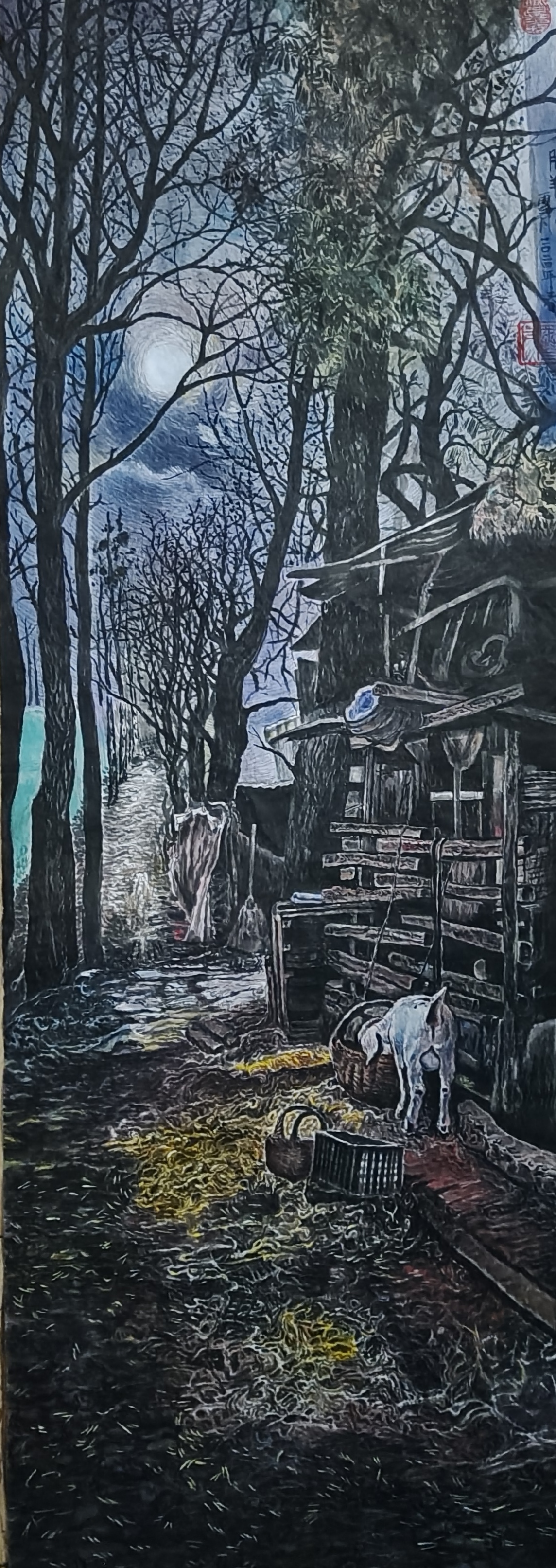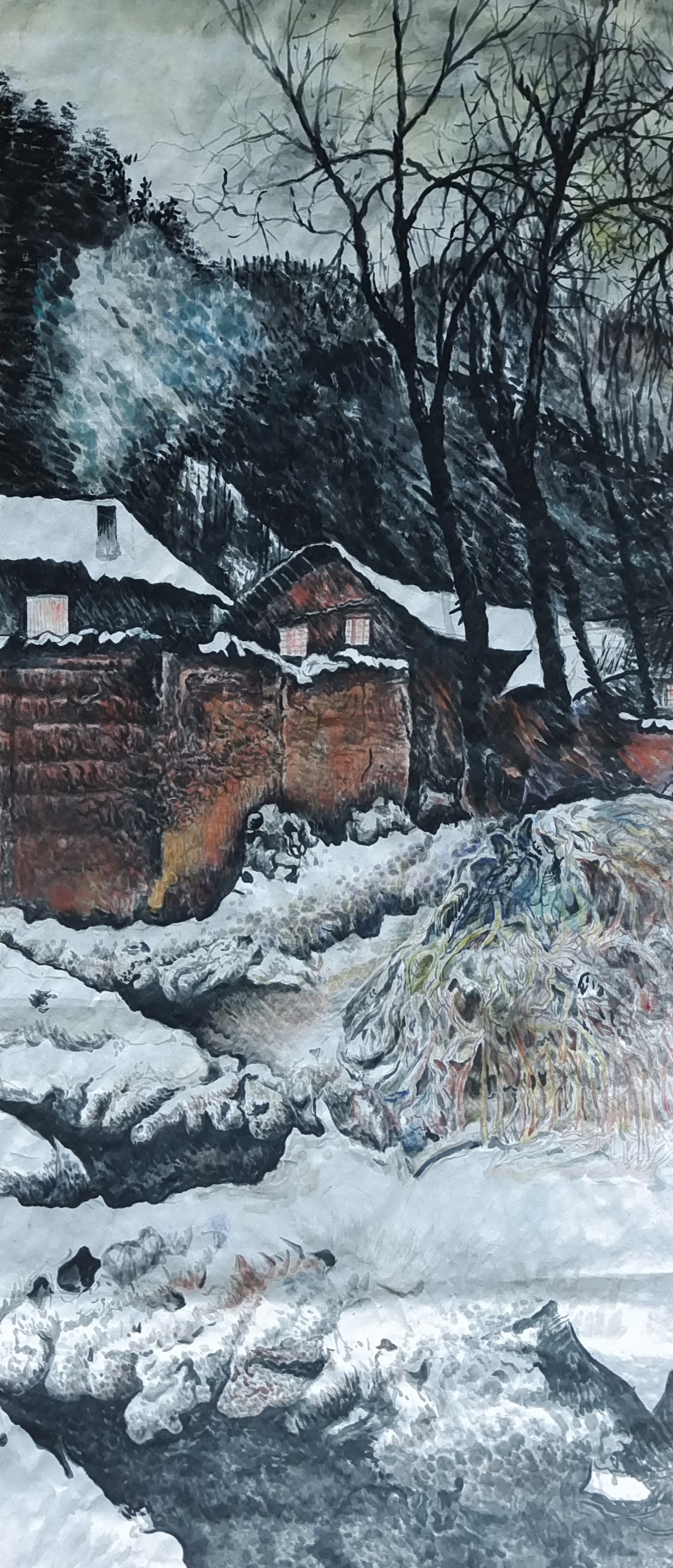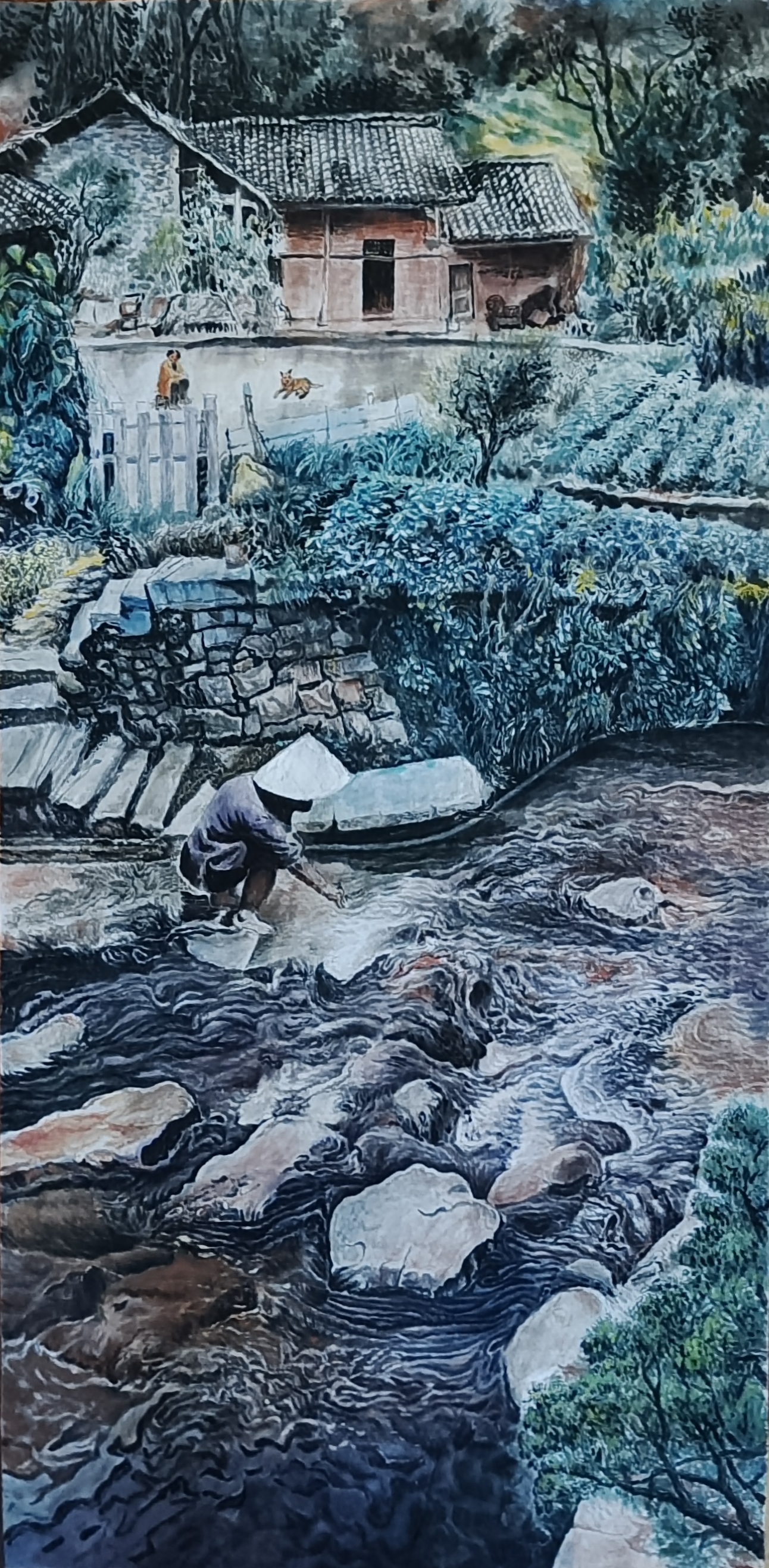 當然,商武斌也在山水中,畫人物、禽鳥、走獸,以及村莊一角、院落民宅,一切皆能入畫,冒著煙火氣,熱氣騰騰,觀之入心,品之有味,可覽、可游、可品讀,仿佛還可以借此下酒。