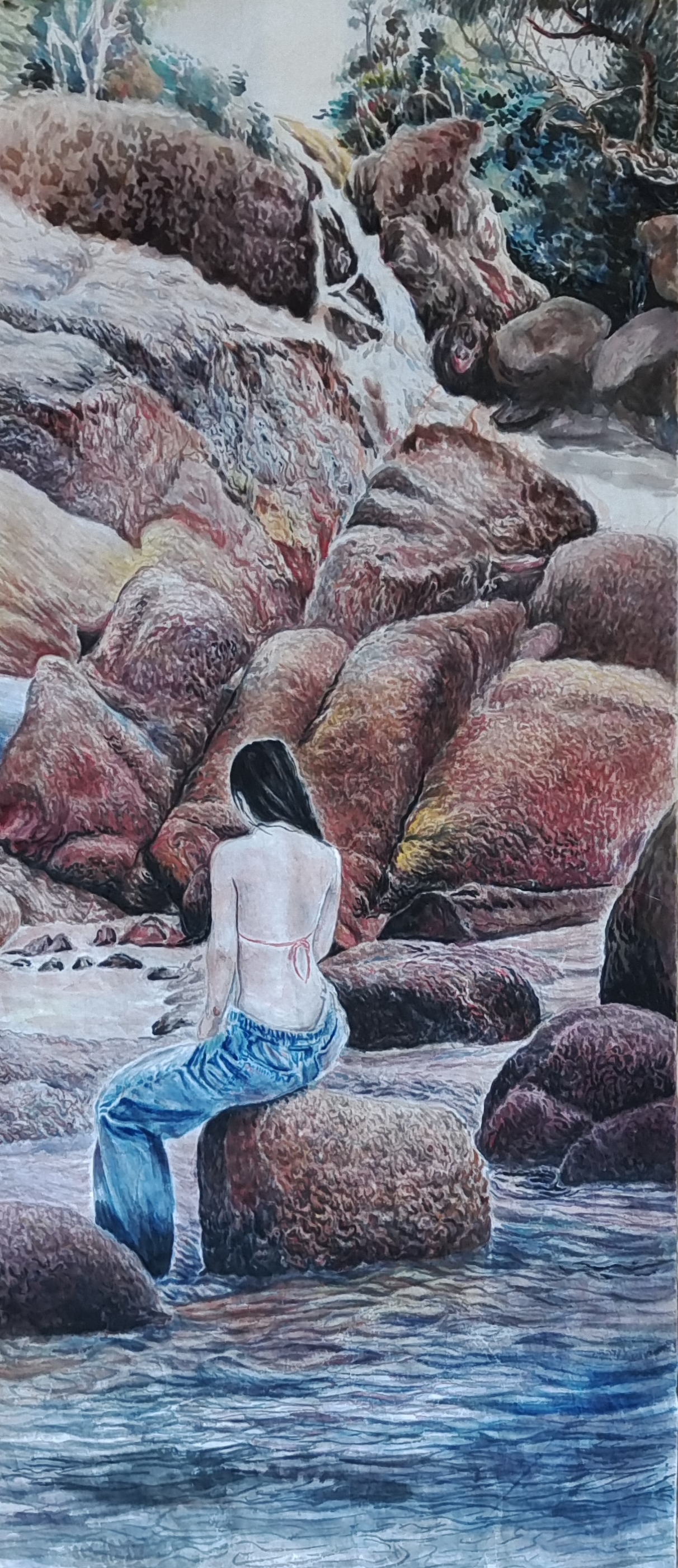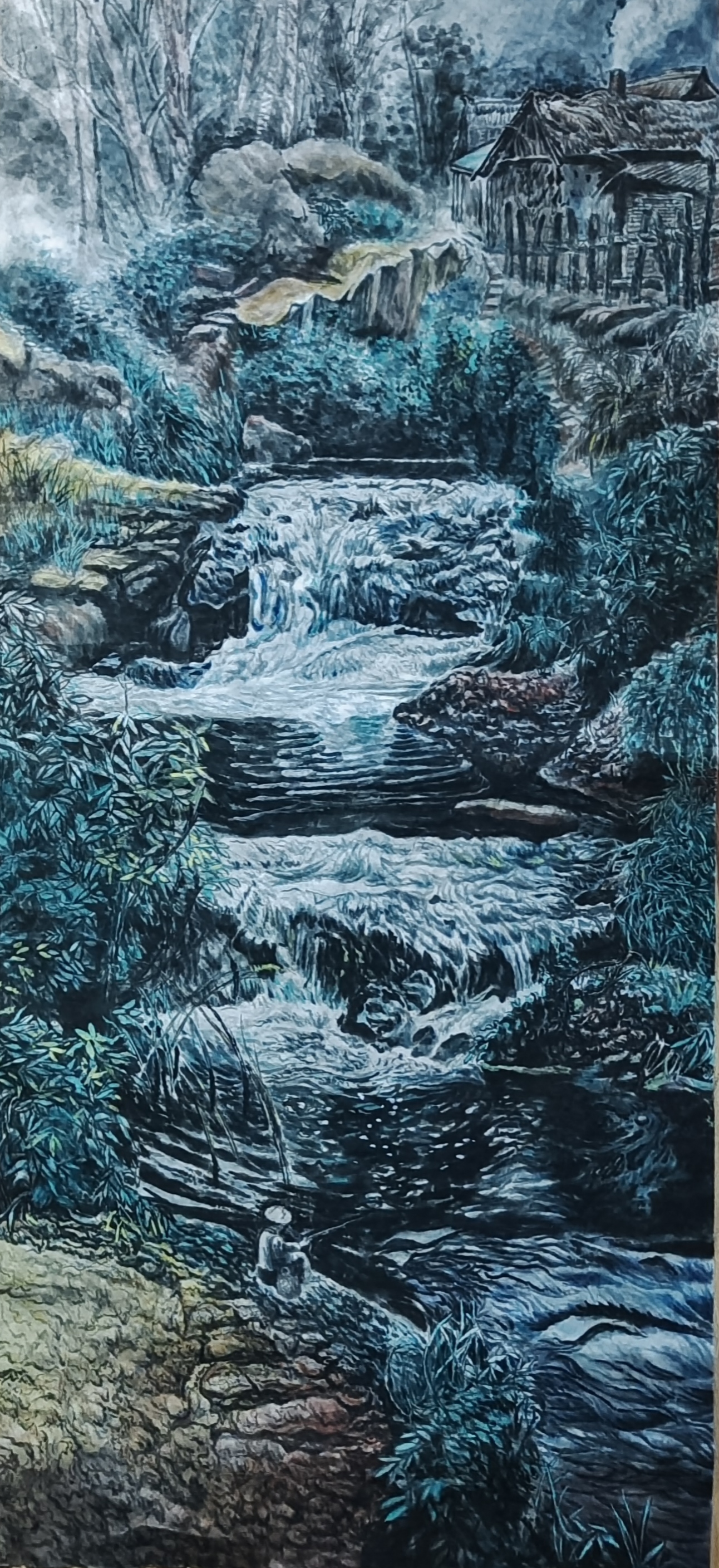 很難把商武斌的繪畫界定為某一種題材,因為如果把他的畫看作山水畫,他卻在山水畫中融入了嚴謹而扎實的造型,其造型包括人物、山水、禽鳥,然而,如果把他的畫看作人物畫,他又畫出了清幽絕勝的山水意境,而且,也很難把商武斌的畫界定為中國畫,或者界定為西方油畫,因為他的畫是典型的中國畫的“氣韻生動”,卻以典型的西方油畫的光影、透視、色彩、造型營造出中國畫的氛圍。