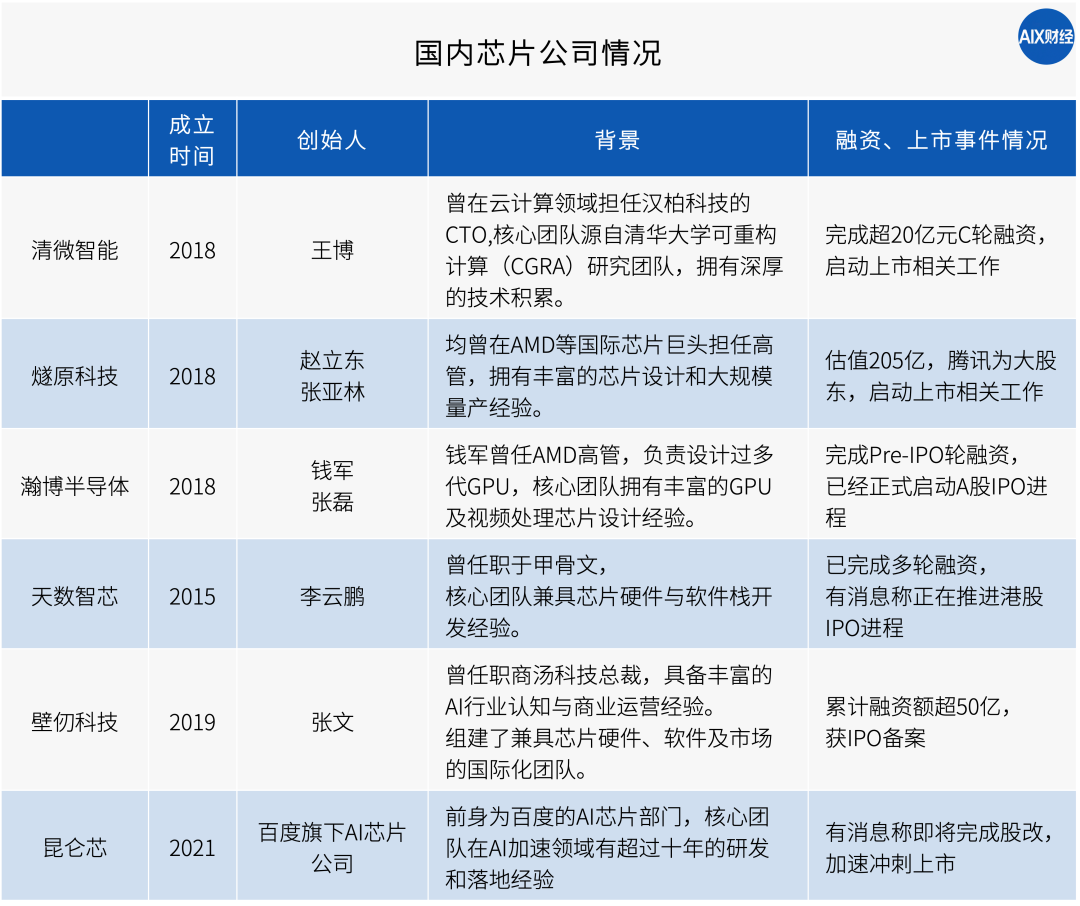 這些公司雖然細分定位不同,但和摩爾線程、沐曦股份類似的是,它們的核心能力起點都高度依賴創始團隊背景。從已披露信息看,多數國產AI芯片公司創始人并非僅僅擁有“行業經驗”,而是主導過國際頂尖芯片產品從設計到量產的全流程。