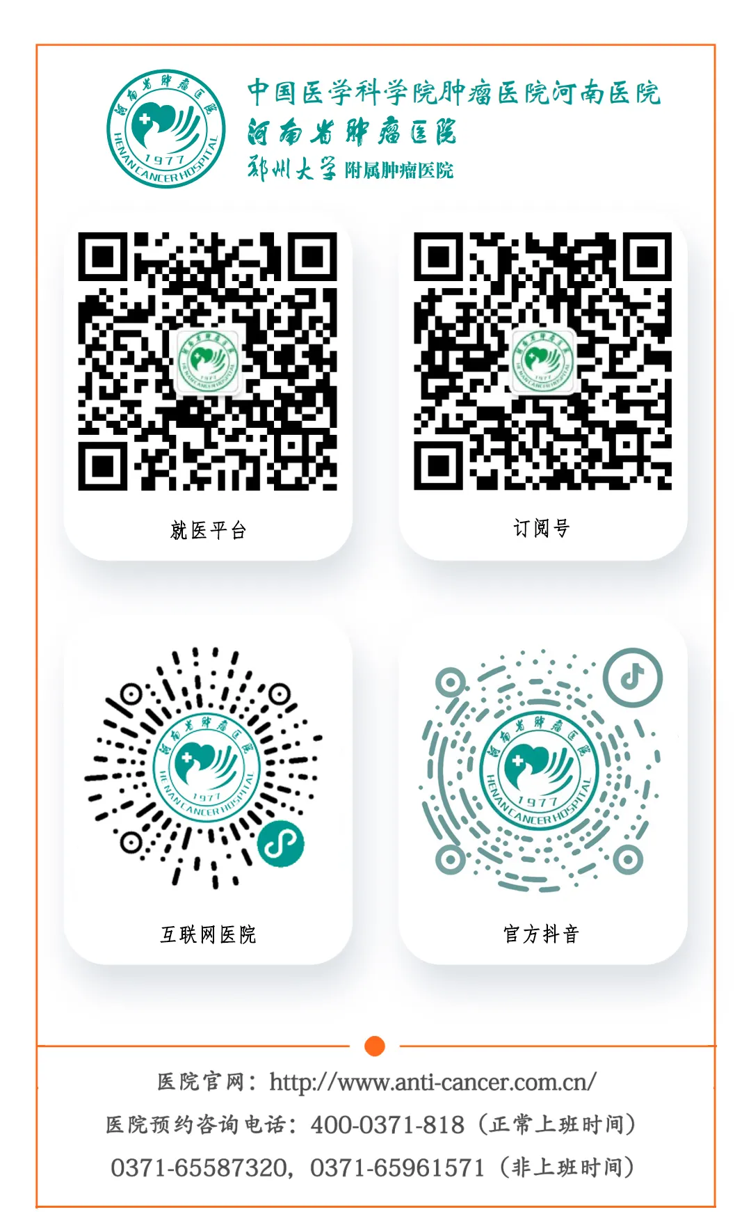 關注“河南省腫瘤醫院就醫平臺”微信公眾號,點擊“就診助手”——“預約掛號”——“中國醫學科學院腫瘤醫院專家”,選擇科室和專家。