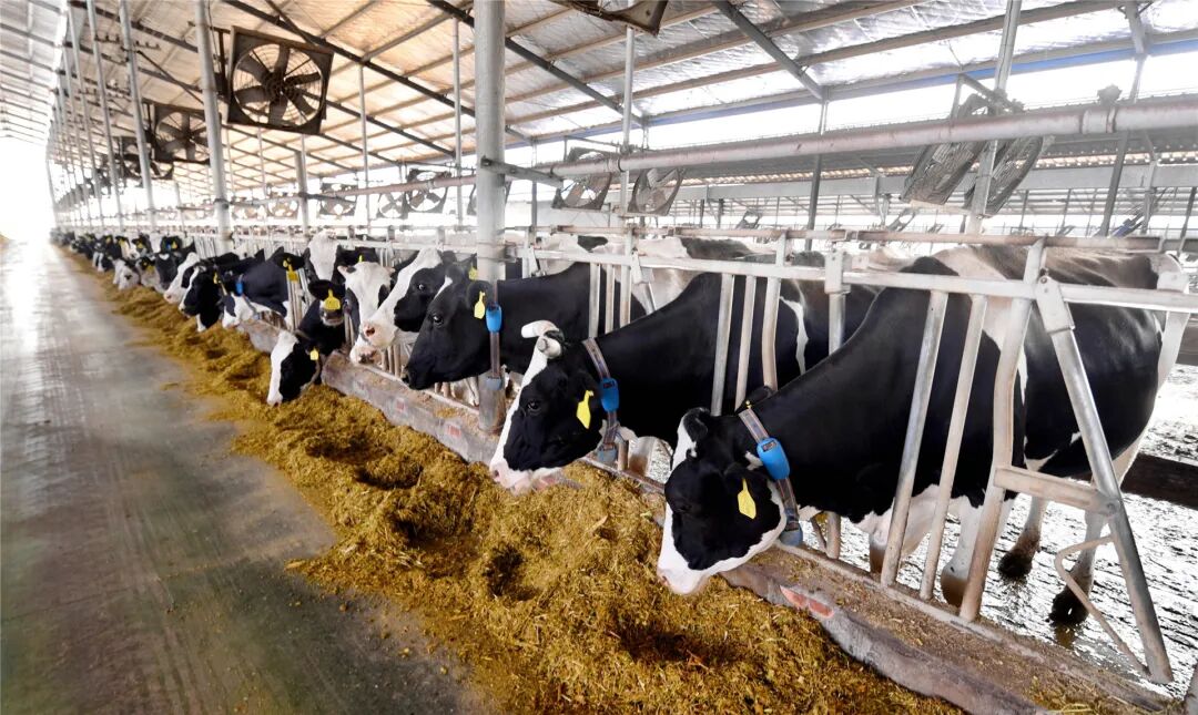 君荷牧業占地面積138畝,擁有大型養殖廠房5棟,總投資達1.3億元,目前奶牛存欄量1800頭,每日產鮮奶達33噸以上,引入的智慧畜牧飼養管理系統,實現牛舍光照強度、溫度濕度、日照數等環境參數的智能化控制。其奶牛飼喂采用目前國際最先進的中央廚房模式,做到自動精準上草上料,日糧配方精準實施,確保了奶牛產奶需求,健康需求。其中,擠奶環節采用以色列進口的轉盤式擠奶設備,具備自動擠奶、自動脫杯功能,可同時為60頭奶牛擠奶,極大提升了擠奶效率與鮮奶品質。