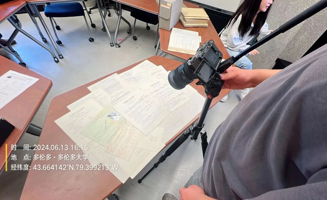 攝制組在多倫多大學拍攝錢偉長大量珍貴檔案