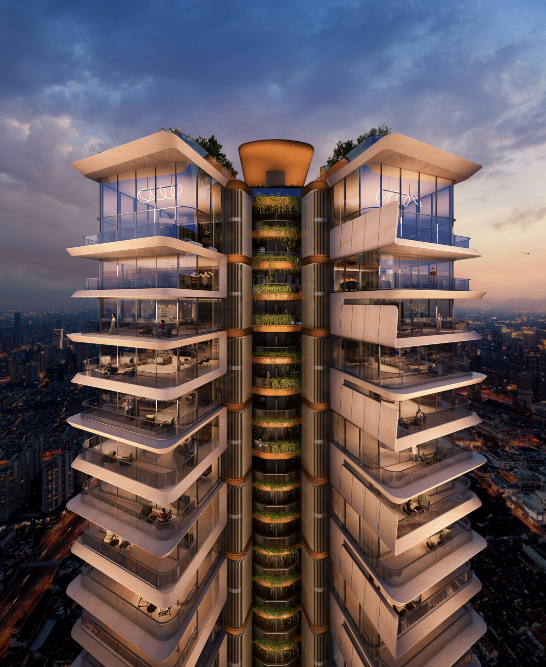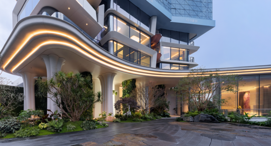 再看貝宸S1的建筑立面,是個人非常喜歡的建筑師孟凡浩老師的設計,也是超流體設計語言的一次大膽嘗試,更藏著對居住實用性的考量。