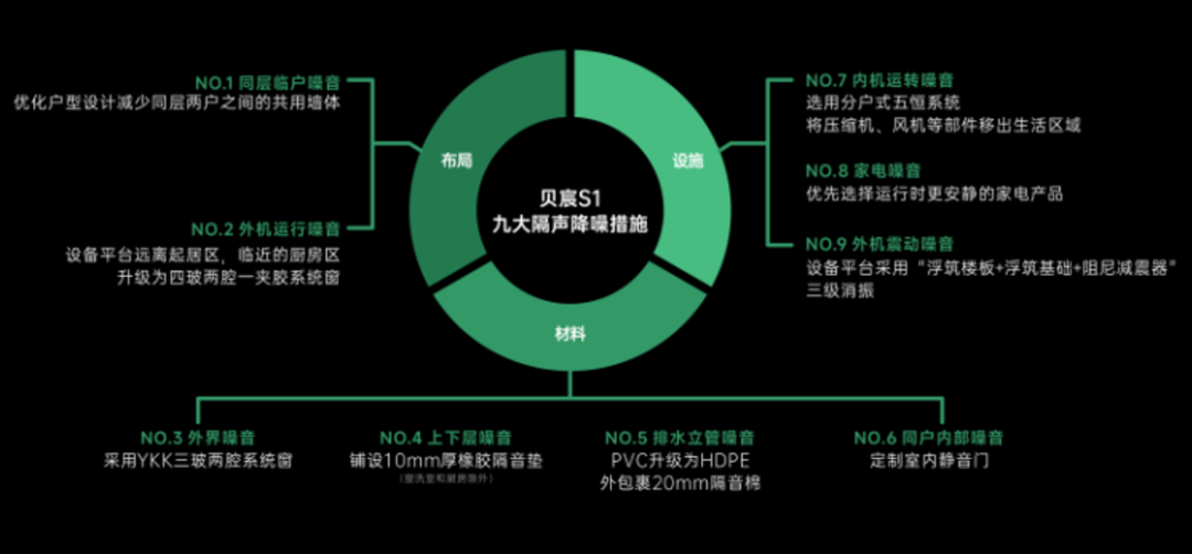 樓板加裝10mm厚的隔音墊,國內住宅見的最厚的;HDPE排水管包裹3cm隔音棉,搭配YKK三玻兩腔窗,室內噪音可控制在30dB以下,達到圖書館的安靜標準。