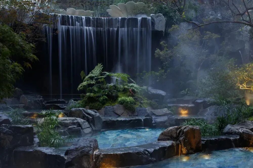 地下車庫同樣細節滿滿,一條水幕直接從一樓大堂流到地下大堂: