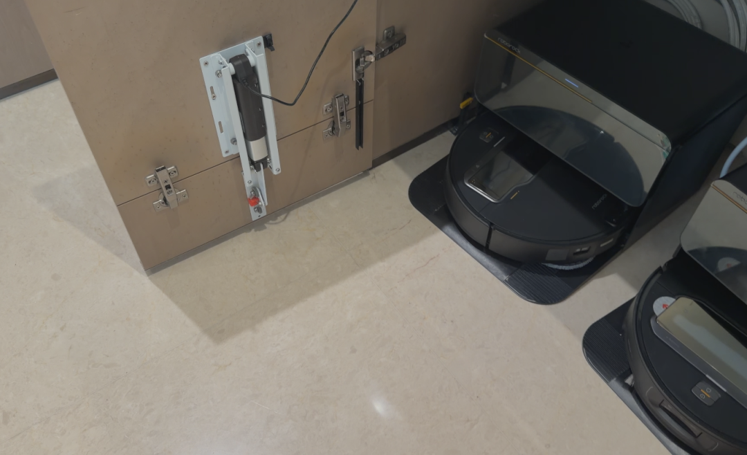 這個細節也很有意思,因為是豪宅,設置了兩個掃地機器人,注意看,為了美觀,這里設置了自動控制的柜門,但機器人是可以自由出入的。