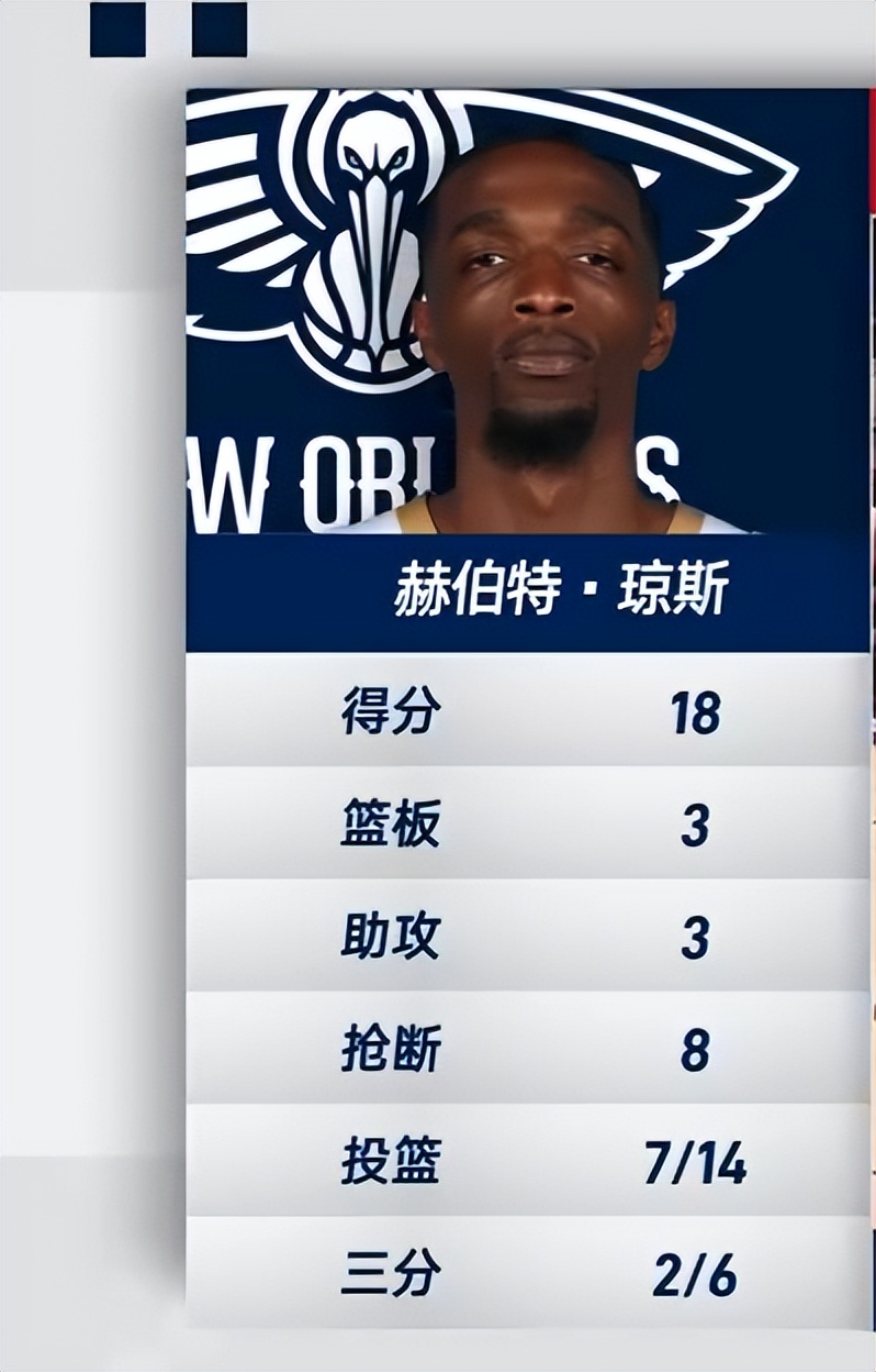 瓊斯8個搶斷生涯最多,追平鵜鶘隊史最高。