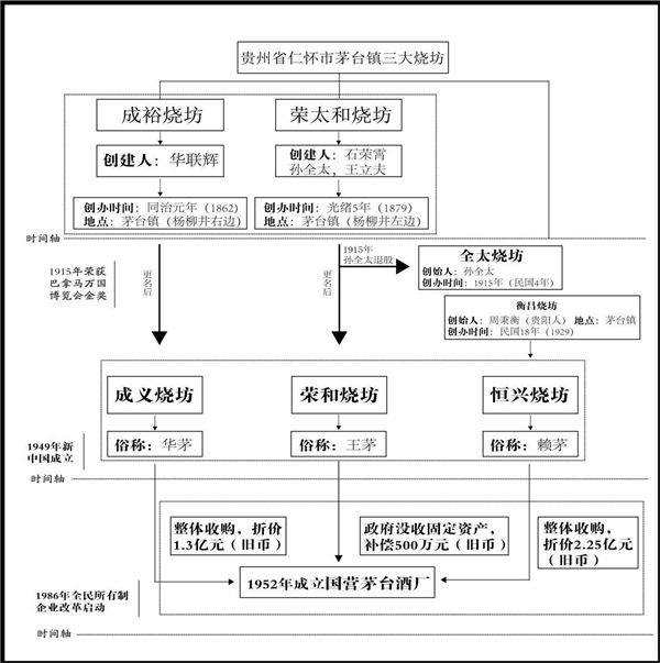 1951年,成義燒坊被仁懷縣人民政府購買并公有化,更名為貴州省專賣事業(yè)公司仁懷茅臺酒廠,成為貴州茅臺酒廠的前身之一。