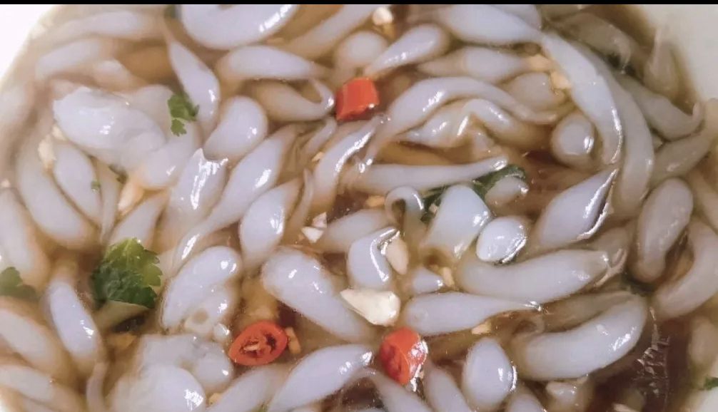 這個漏魚兒也是面食的一種。取其形態,似游動的小魚兒而得名。