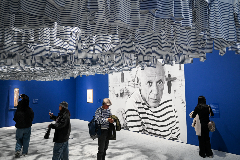 此外,展覽還包括“玩轉(zhuǎn)時(shí)尚的藝術(shù)鬼才”“集合與拼貼”“古典主義畫家”“戰(zhàn)爭期間”“海魂衫”“晚期創(chuàng)作:1969—1972年”“展覽中的畢加索”等展廳,進(jìn)一步延展藝術(shù)家的主題探索,使觀眾得以從多維度理解畢加索在材料、手法、題材與風(fēng)格上的持續(xù)拓展。整體展覽共同勾勒出畢加索作品在國際藝術(shù)史中的重要位置,以及其跨越時(shí)空、持續(xù)影響當(dāng)代視覺文化的深刻力量;在今日文化景觀不斷變動(dòng)的背景下,他的藝術(shù)仍保持清晰的輪廓與穿透力。
