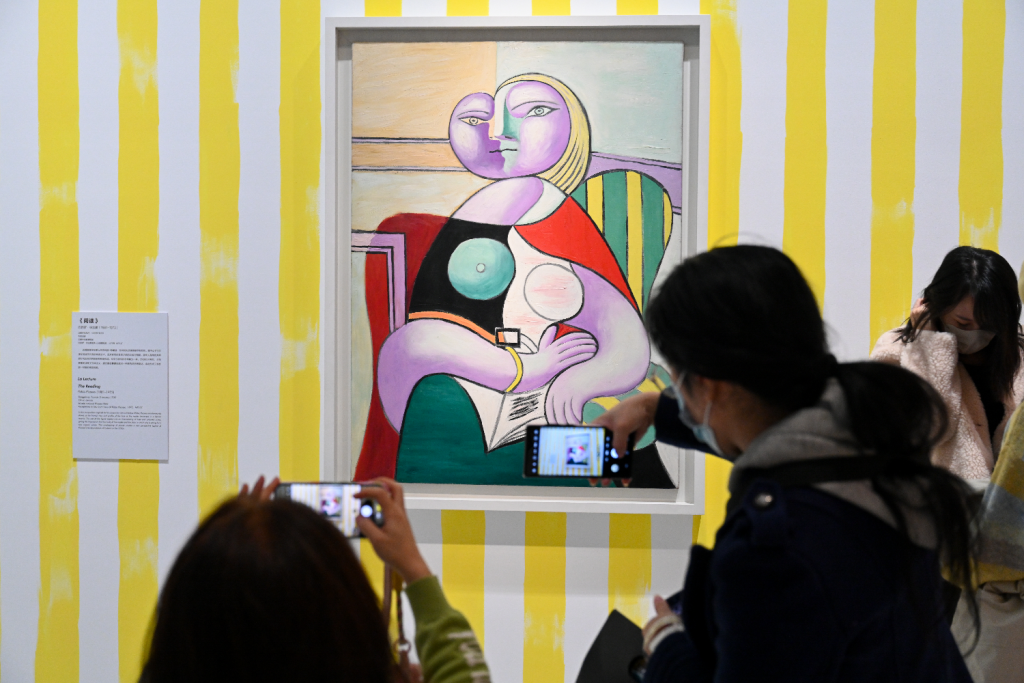 觀眾在拍攝展覽主視覺之一的《閱讀》(1932)。澎湃新聞?dòng)浾?朱偉輝 圖