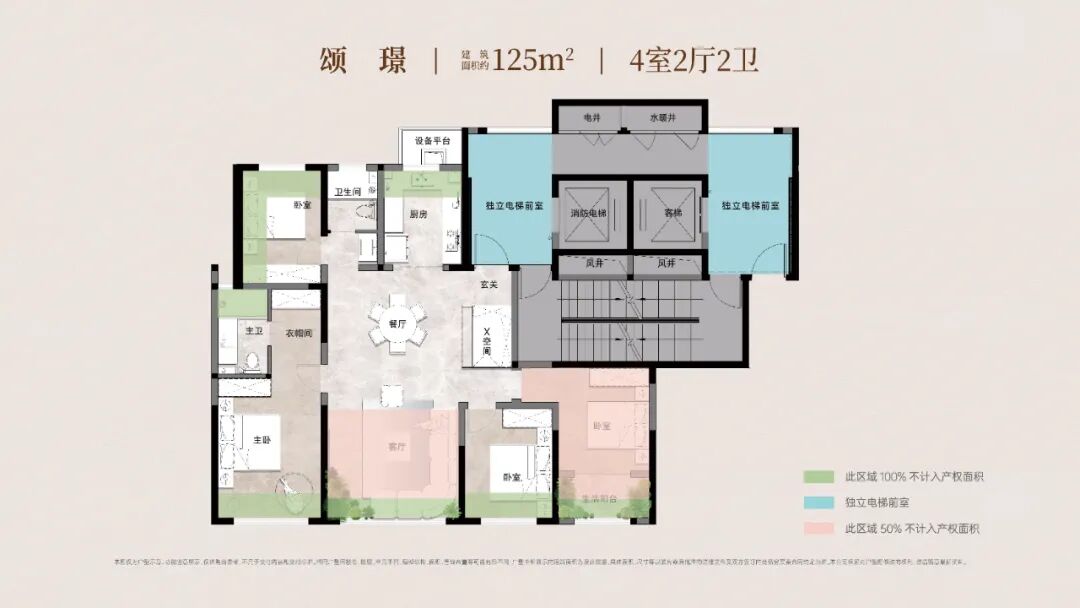 建面約125㎡在115㎡產品的基礎上,南向增加了一間臥室,另外還有儲藏空間等貼心設計。