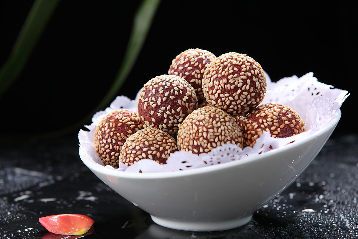 主要原料采用確山縣瓦崗紫紅薯,這是當地的地理標志產品。麻團外皮是白色糯米粉裹芝麻,內里是香甜的紫紅薯泥,白里透紫、酥軟可口,營養豐富且甜而不膩。