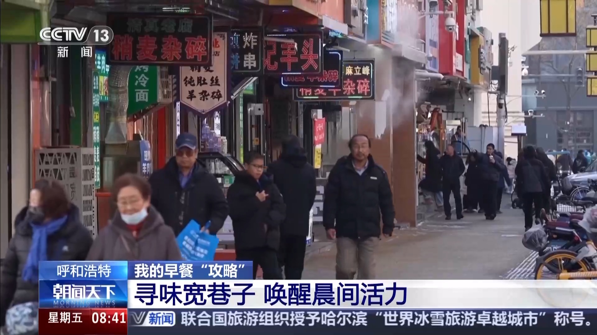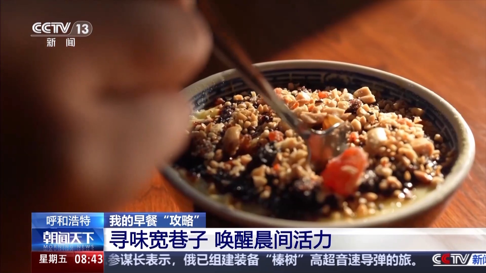 總臺記者 趙思雯:天剛蒙蒙亮,但寬巷子里已經熱鬧起來了。早餐鋪陸續開張,空氣中彌漫著肉香、面香,還有奶香。都說呼和浩特的早餐非常“硬核”,那今天我們就一起去探探!
