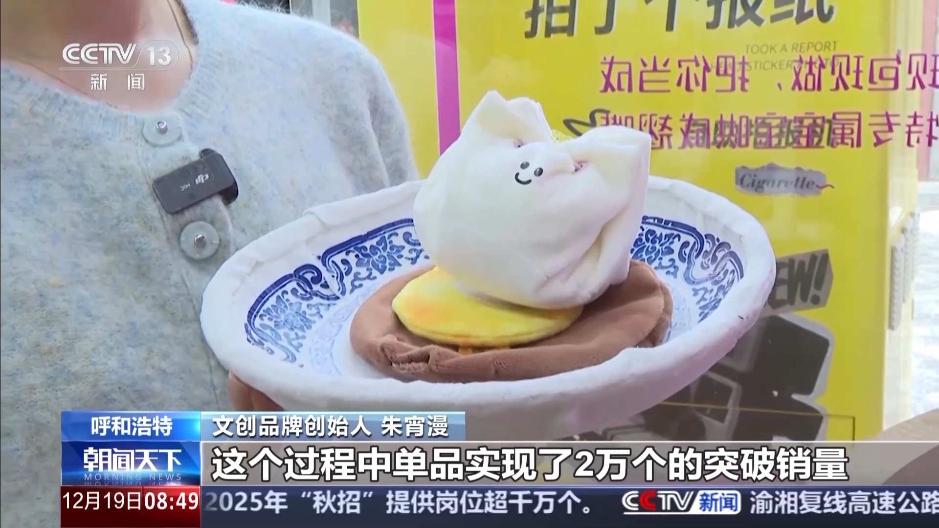 文創品牌創始人 朱宵漫:從2024年10月份我們的小燒麥正式上市,這個過程中單品銷量突破2萬個。我們希望讓大家在呼和浩特能夠吃到特色美食的同時,還能帶走一份這個城市的專屬記憶。