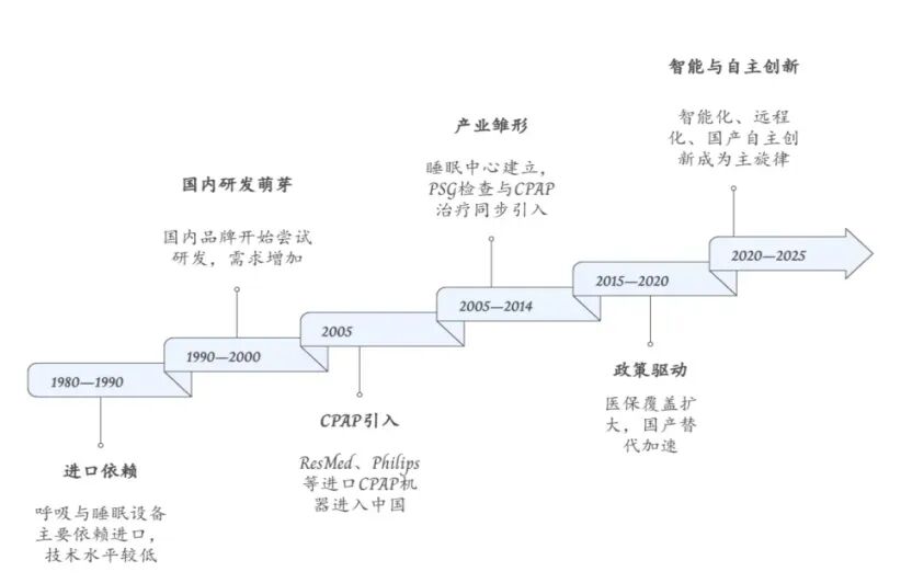 2000年前后,國內企業才開始涉足無創呼吸機和制氧機的研發與生產;2010年以后,國產家用呼吸機產品逐步進入市場。