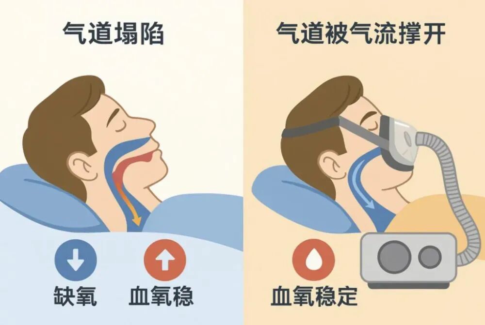 呼吸機并不是“替你呼吸”,而是通過一個輕柔的氣流壓力,在睡眠時“撐開”氣道,防止塌陷。