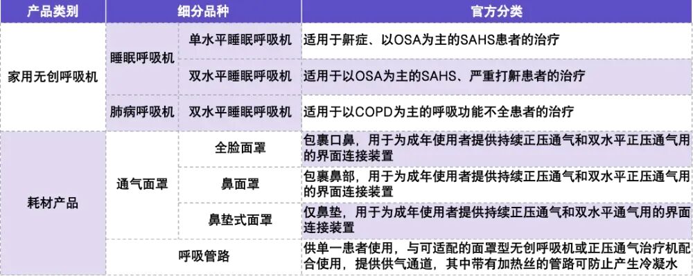 呼吸睡眠類家用器械主要分為監護類設備、治療類設備和配套耗材三大板塊。