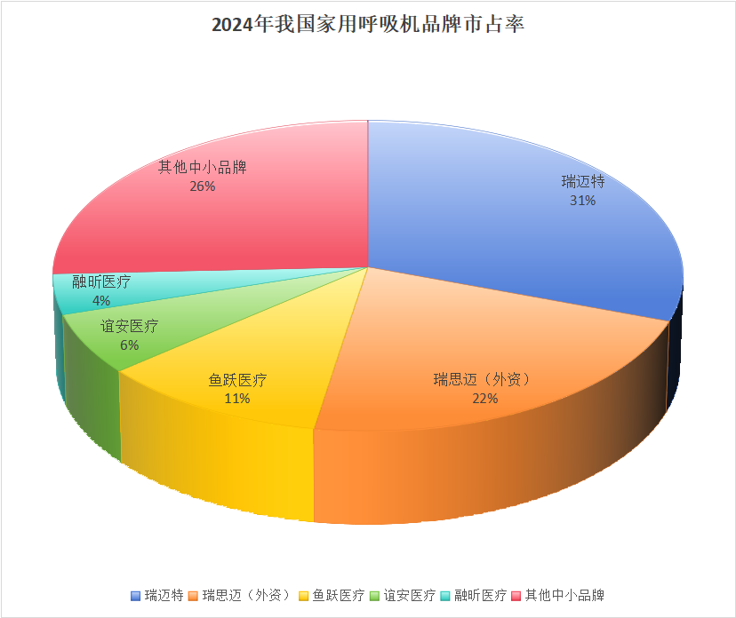 2024年國內市場銷量前五的品牌中四家是本土企業,合計市場份額達52.3%,首次超過外資品牌總和,標志著國產品牌已成為國內家用呼吸機市場的主導力量。