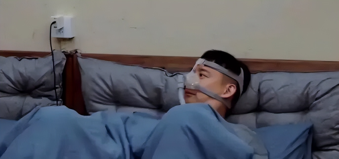 原來,黃磊長期受打鼾困擾,會出現睡眠呼吸暫停的現象,所以在某綜藝節目中佩戴呼吸機睡覺。