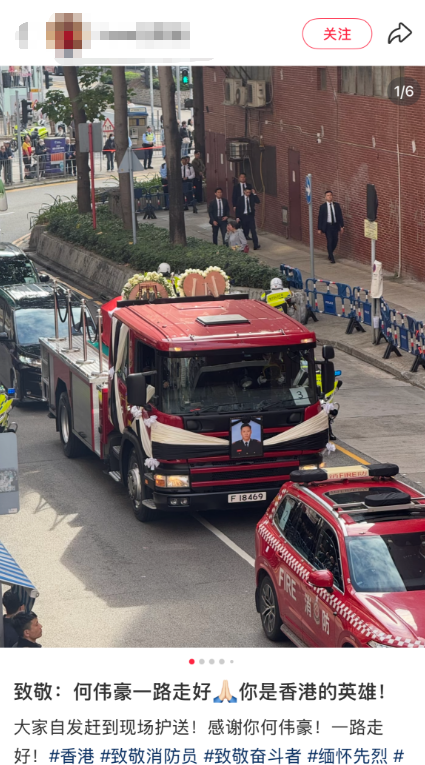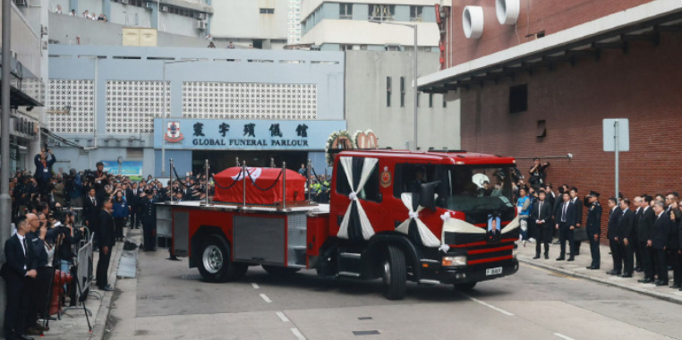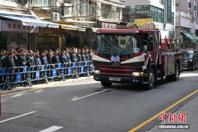 12月19日上午,香港已故消防隊目(追授)何偉豪最高榮譽喪禮在位于紅磡的世界殯儀館舉行。