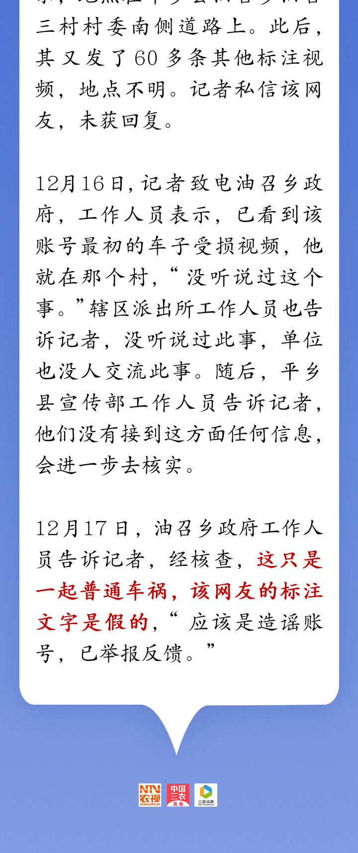 謠言止于智者,真相源于求證。中國三農發布推出《真相來了》專欄,每周聚焦熱點事件、生活常識、科學知識等內容,讓大家在信息的洪流中明辨真偽,共同營造清朗的網絡空間。不造謠、不信謠、不傳謠,人人有責!