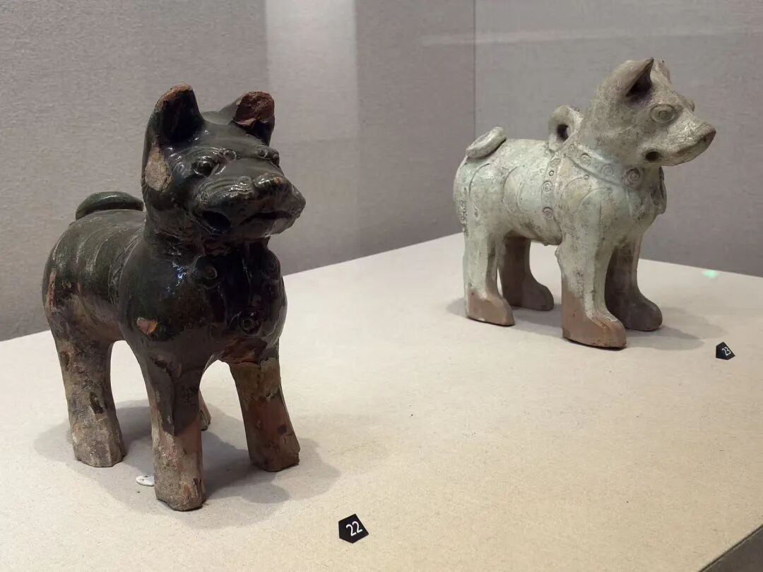 漯河市博物館中,也有一對“好朋狗”,這對綠釉立姿紅陶狗,狗身均滿飾青釉,昂首豎耳,尾巴卷曲,四足直立,腰部飾鈕。雙雙出鏡,萌力加成,愛寵人士狂喜,遠(yuǎn)程喊話博物館,可千萬不要讓他們分開呀!