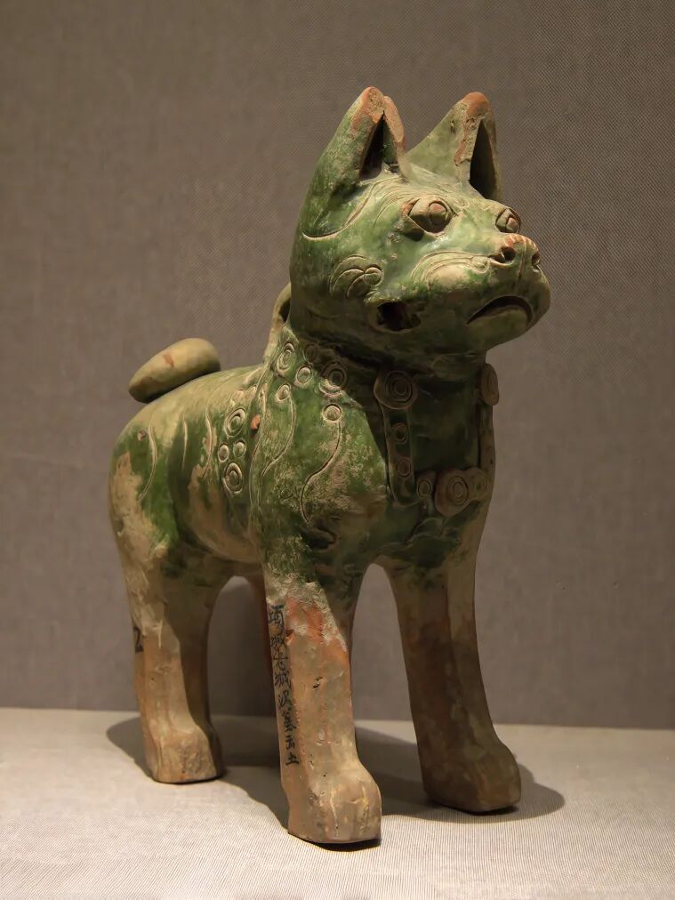 漢代綠釉立姿陶狗展柜前總是圍滿了游客,而陶狗本汪則像忠誠的衛(wèi)士,昂首挺胸、威風(fēng)凜凜,被網(wǎng)友親切喚作“站崗小狗”,看起來就靠譜。