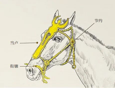 當(dāng)盧通常固定于馬額頭中央偏上的位置,可以作為面具使用,起到一定的防護(hù)效果;也可以作為裝飾使用,使馬更美觀、華貴的同時,凸顯出馬主人身份地位的高貴。