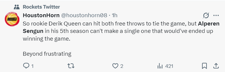 休媒賽后很不滿申京關(guān)鍵時(shí)刻的表現(xiàn),終場(chǎng)前44秒申京兩罰不中,隨后被薩迪克-貝完全絕平,阿門命中后,奎因兩罰全中,終場(chǎng)前9秒又是申京獲得絕殺機(jī)會(huì)拋投不中,前場(chǎng)籃板繼續(xù)不中。