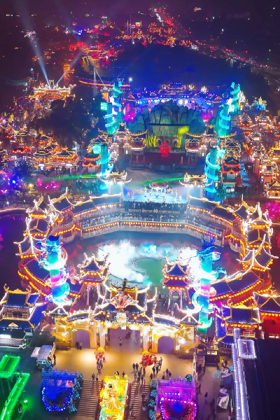 航拍開封萬歲山夜宴 宋風燈海攬盡汴梁不夜天