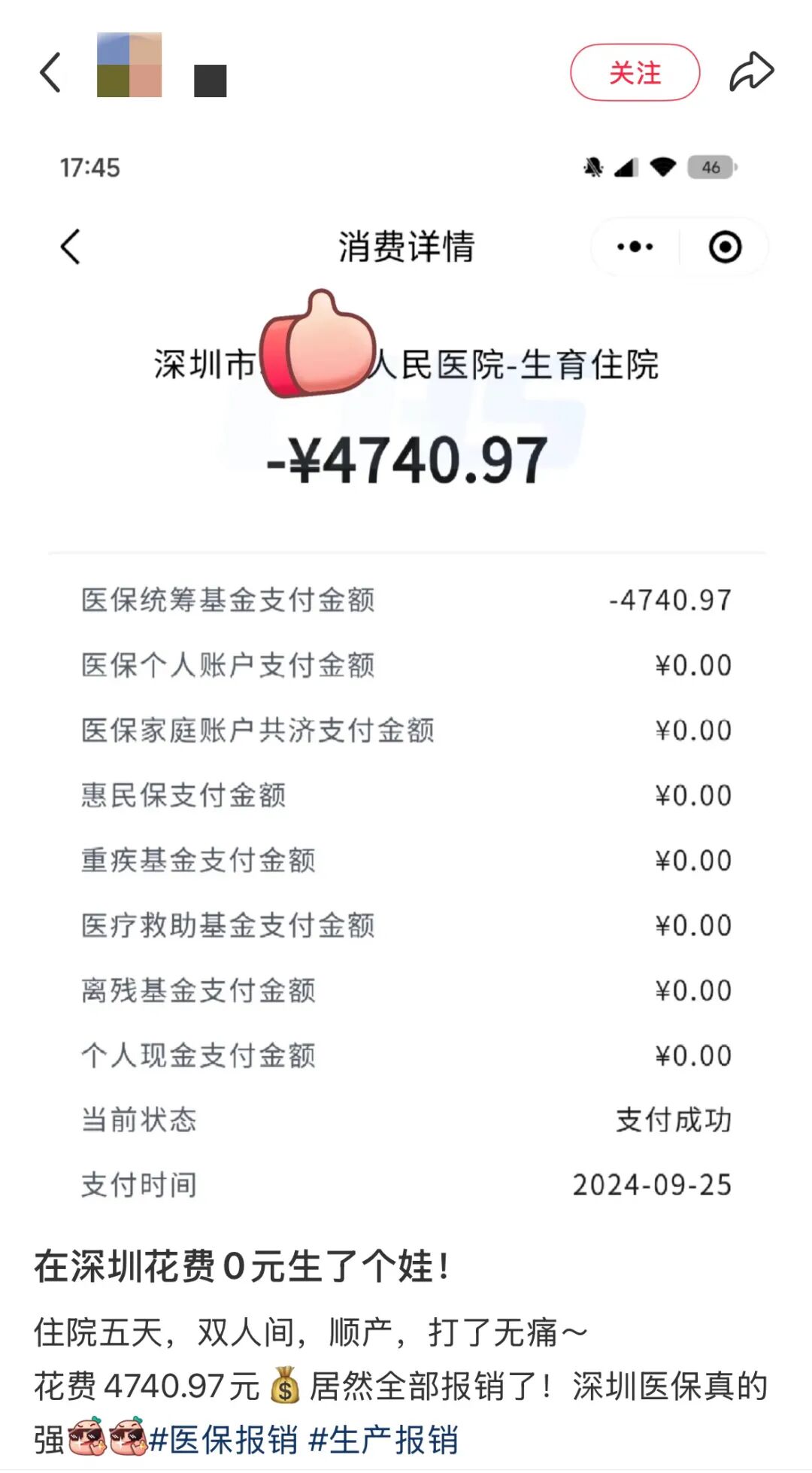 曬出住院分娩賬單