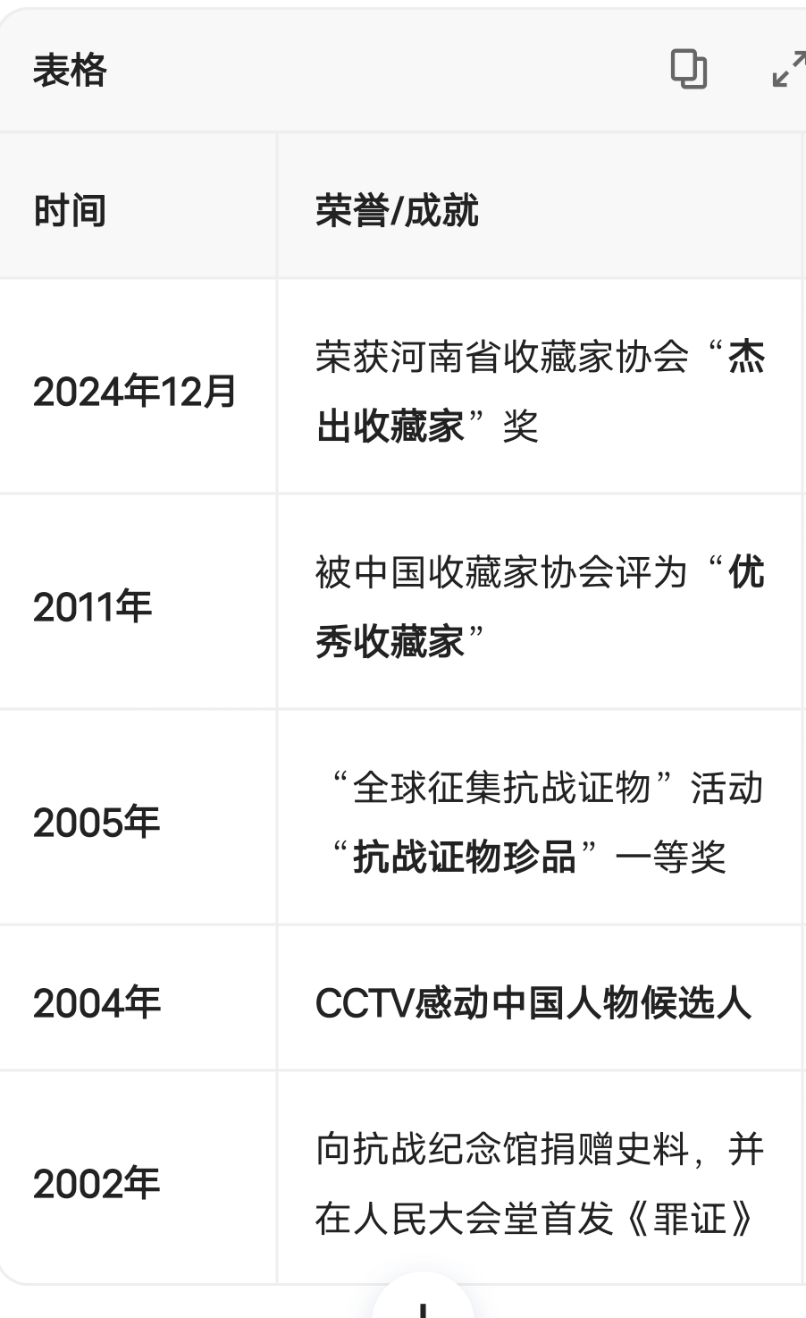 他被譽為"感動中國"人物候選人(2004年),并被新華社,央視,人民日報等數百家媒體廣泛報道。媒體常稱他為"紅色收藏家"或"愛國收藏家".3。榮譽與評價