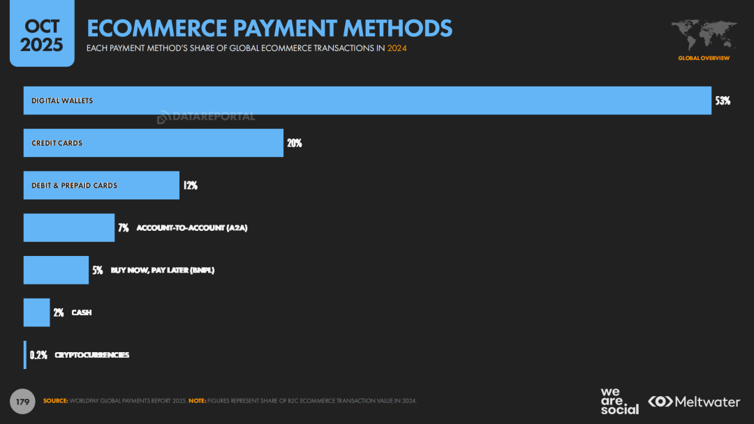 在驅動因素上,價格和履約體驗仍然是用戶線上購物的主要考量。與此同時,數字支付的基礎設施也在迅速夯實。報告指出,約53%的電商交易通過數字錢包完成,約有1/4的全球網民每月使用移動支付服務。這表明,數字錢包正在取代傳統銀行卡成為主流支付方式。