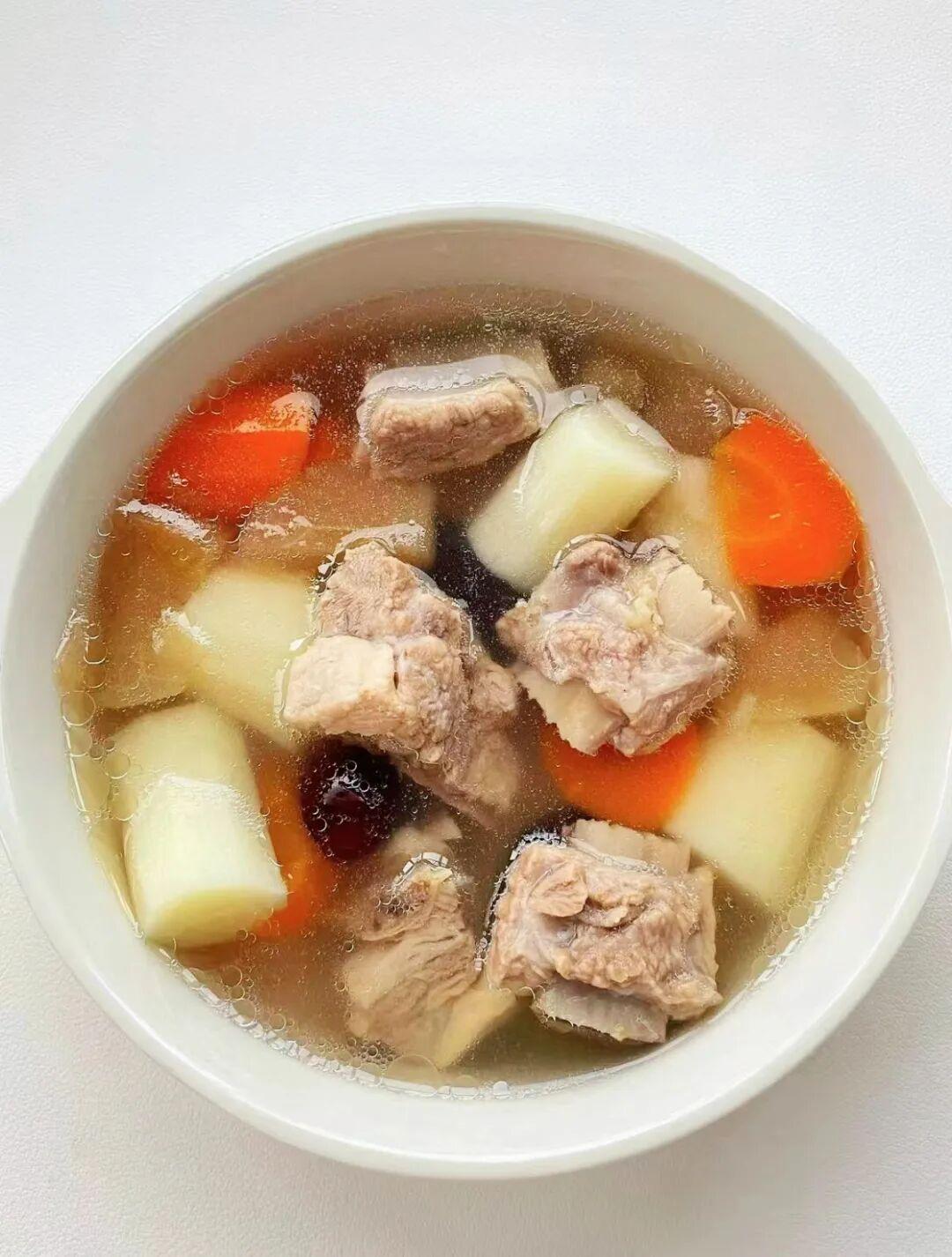 山藥健脾養胃,紅棗能補氣血、養心安神,搭配的排骨富含優質蛋白和鐵元素,是補血的好食材;蘋果和胡蘿卜增加清甜口感,還能補充維生素,讓湯的營養更均衡。燉好的湯味道鮮潤不油膩,孩子愛喝,暖身又滋養,對改善氣血、安穩睡眠也有幫助。