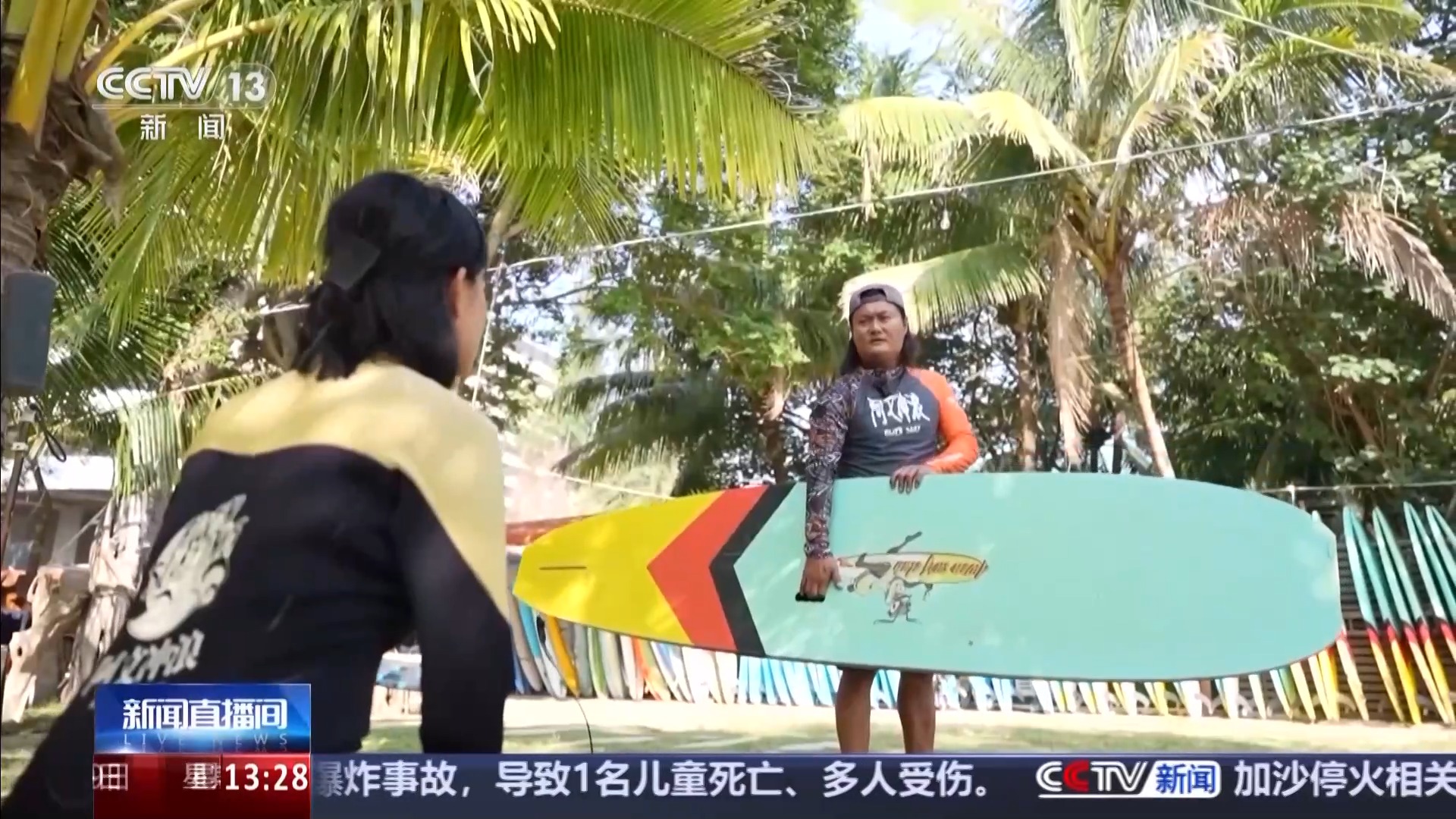 總臺記者 彭雨佳:不僅有優(yōu)質(zhì)的海浪,在這里從一塊浪板,一套沖浪服,到?jīng)_浪旅拍、主題酒店,再到專業(yè)培訓(xùn)和國際賽事,圍繞沖浪的所有環(huán)節(jié),都能一站式配齊,一條完整的“浪尖經(jīng)濟(jì)帶”正在海南逐漸形成。