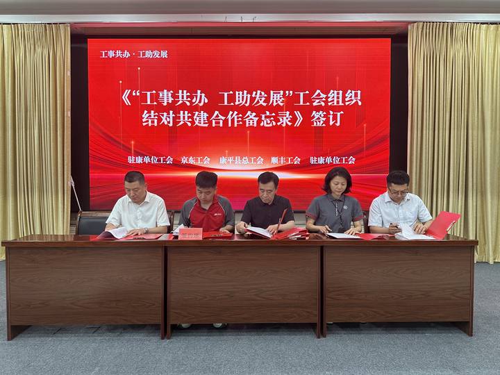 會議現(xiàn)場,各方代表簽訂助農(nóng)合作協(xié)議——康平縣委與順豐、京東公司簽訂《助農(nóng)發(fā)展合作框架協(xié)議》;康平縣總工會與順豐、京東工會、省市駐康單位(含金融機構(gòu))工會簽訂《“工事共辦 工助發(fā)展”工會組織結(jié)對共建工作備忘錄》;順豐、京東公司、省市駐康單位(含金融機構(gòu))與康平縣鄉(xiāng)鎮(zhèn)、村、農(nóng)業(yè)產(chǎn)業(yè)化龍頭企業(yè)代表、農(nóng)村合作組織代表、農(nóng)戶代表簽訂《助農(nóng)發(fā)展合作意向書》。