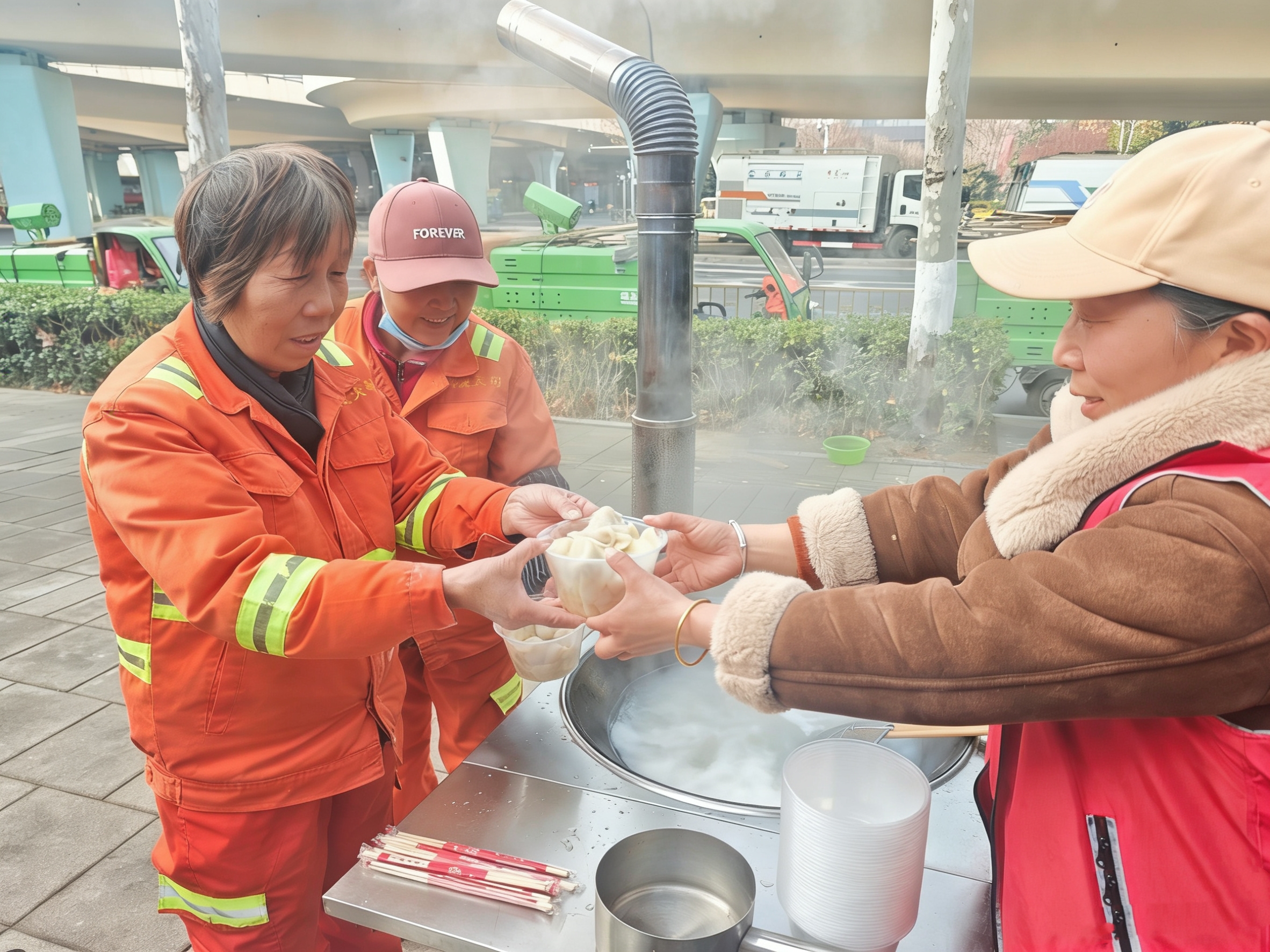 一碗碗水餃雖小,卻像寒冬中的一股股暖流,凝聚著關(guān)愛,不僅溫暖了環(huán)衛(wèi)工人的身心,更傳播著文明實(shí)踐的光芒,成為冬日里最亮麗的底色。