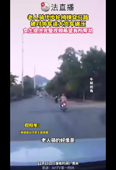 老人坐輪椅橫穿馬路,被貨車碾壓,女生提供完整視頻希望有所幫助