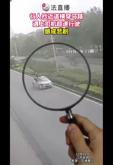 行人抄近道橫穿馬路,遇上司機超速行駛
